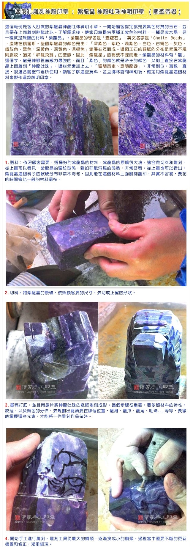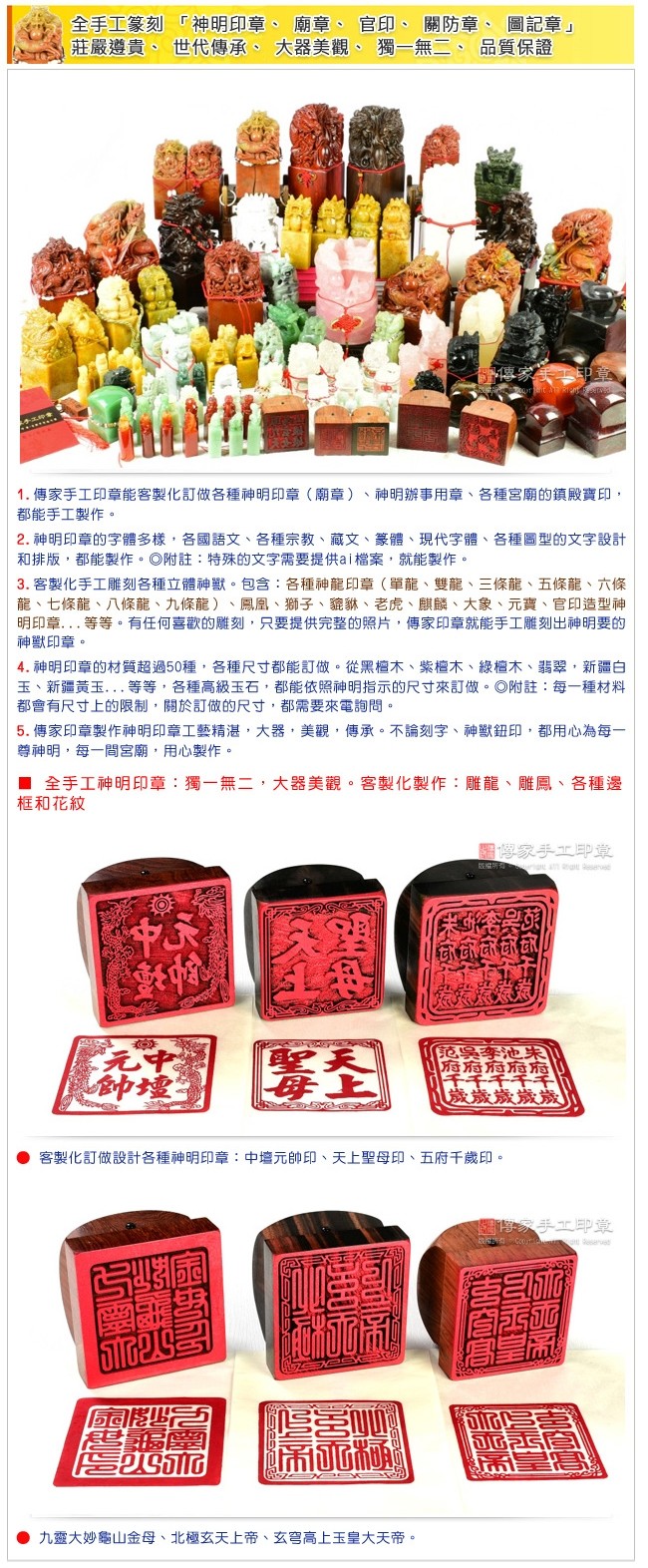 3. 訂購須知(必讀):品項、數量、刻工、印章的紋理和獨特性、品質保證說明。